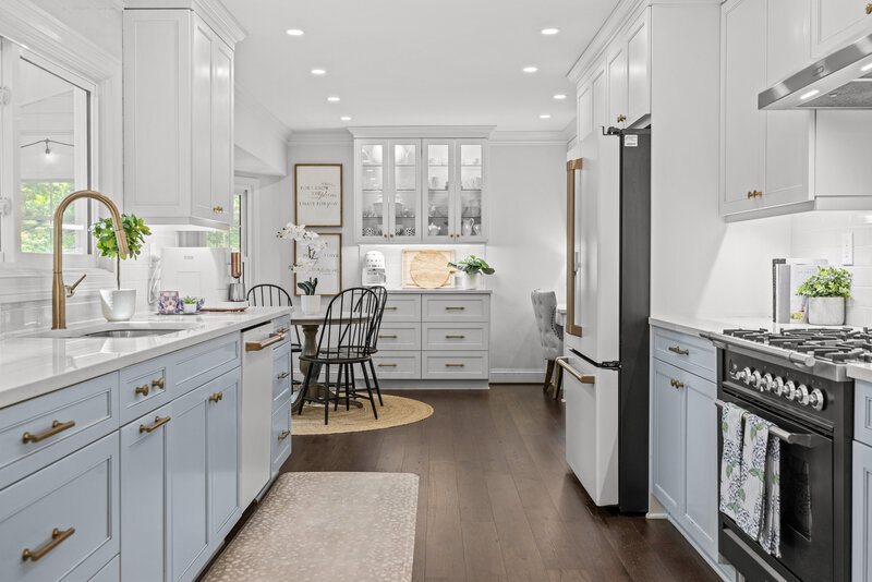 Cottage-like charm meets modern luxury in this beautifully updated 4-bed (with office downstairs being a possible 5th), 2.5-bath home on 1.2 acres in Little Neck. Custom blue shutters pop against lush landscaping, while inside you’ll find hickory engineered hardwoods throughout & a dreamy kitchen remodel—Horizon Cabinetry, Ilve gas range, GE Cafe fridge & dishwasher, quartz counters, & gold hardware.